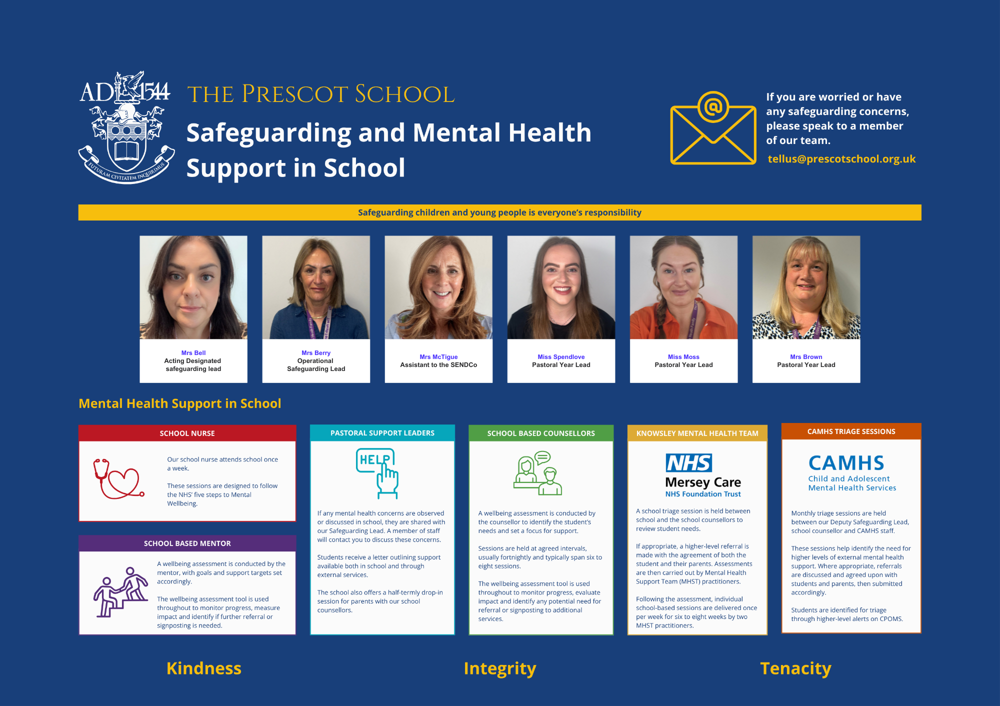 Please contact safeguarding@prescotschool.org.uk or 0151 459 3608 should you need to make contact with one of the team.